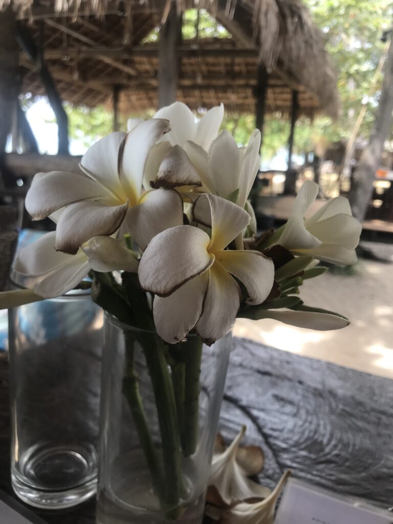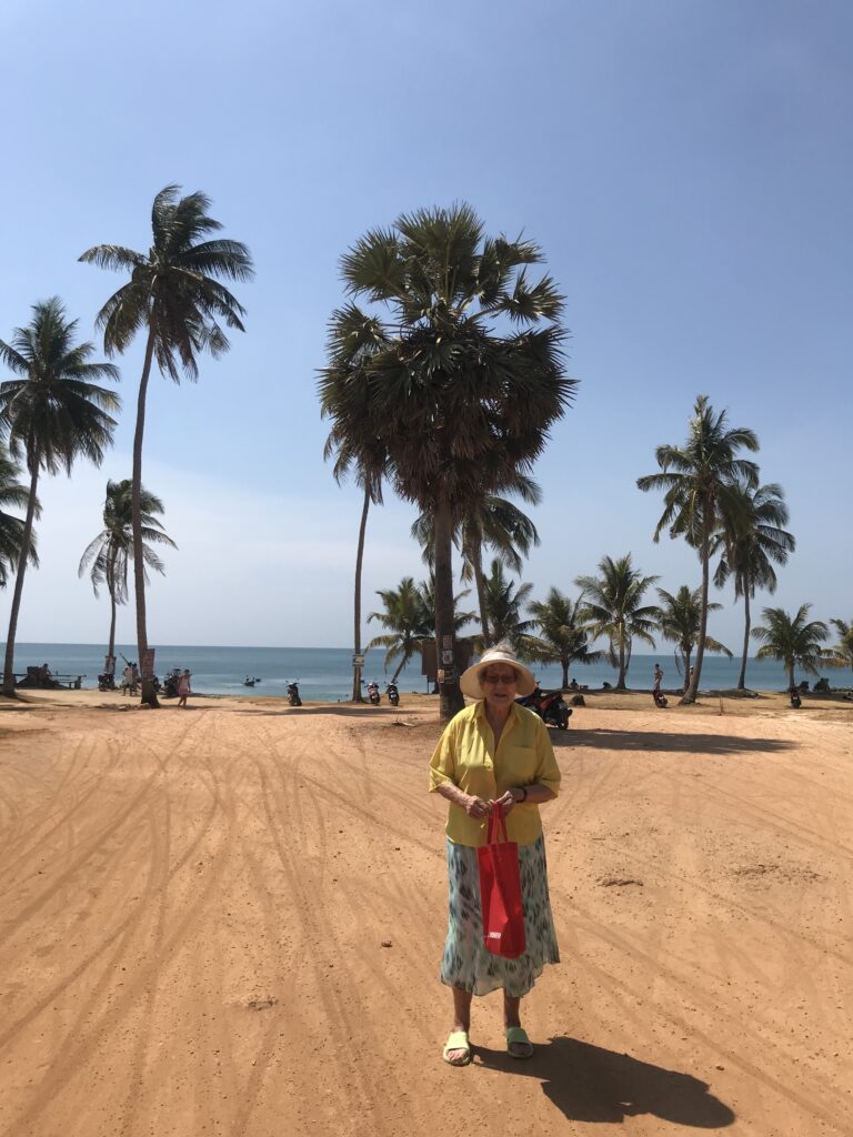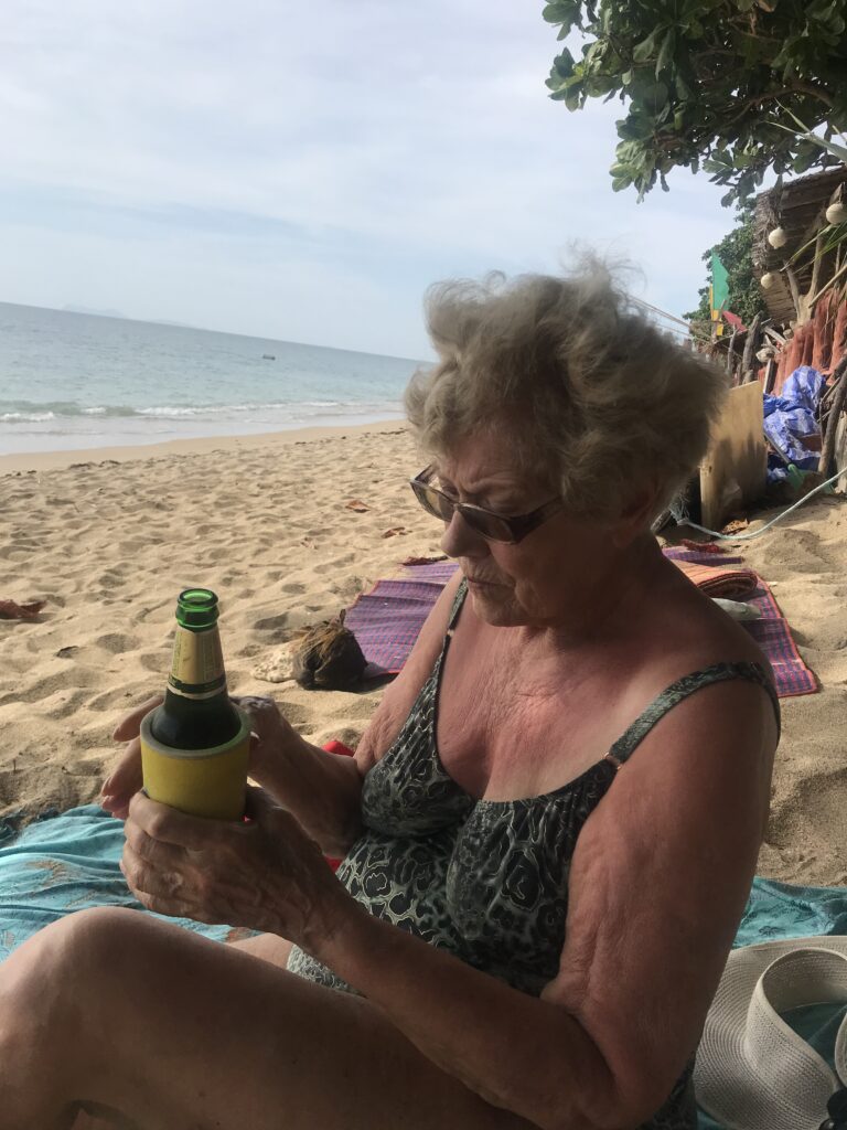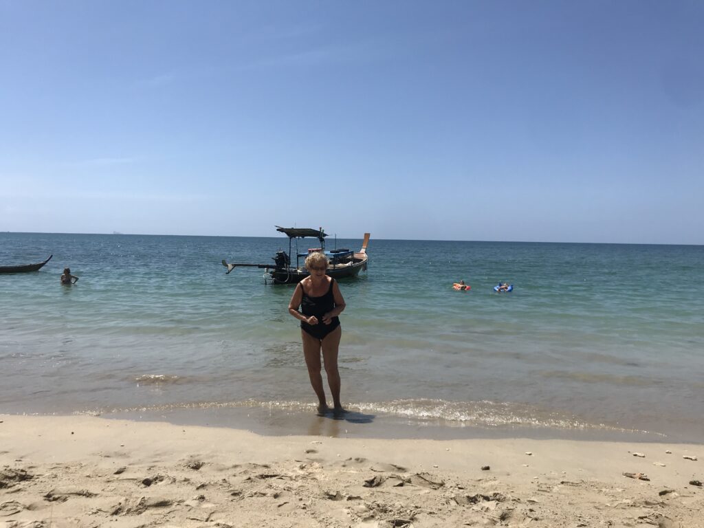 Miejsce, gdzie miałyśmy nocleg był super. Bambusowe chatki z klimatyzacją, co dla babci było zbawieniem. Wiedziałam też, że dla jej bezpieczeństwa, tempem, zostaniemy już na Koh Lancie. Miejsce było na tyle ciche z małą ilością turystów, że było idealne. Właścicielki były cudowne, otoczyły babcię cudowną opieką, troszczyły się o nią i zawsze miały ją na oku. Babcia dużo spała, czytała gazety, obserwowała roślinność, owady, ptaki, palmy, bananowce, ludzi, brodziła w morzu, uważnie stawiając kroki w wodzie.
